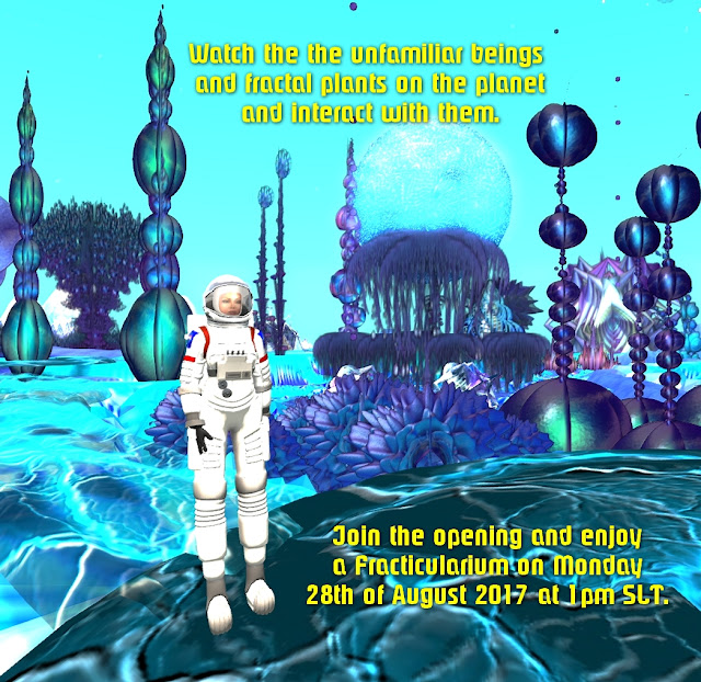 Monday 28th of August 2017 at 1pm SLT => Opening Gala for an exo-planet: with Dr. Lisa Sheldrake's diary-tour you can discover the magical Arcane Forest with a lot of interactive options, created by artist Asmita Duranjaya, on LEA 22. The event will be introduced by a Fracticularium, Asmita's fractal 20-minutes art-show + ambient music in the dream-like environment of this LEA-sim. 10 gift-diamonds are waiting for you; the gifts will be renewed every month, but you have to type the correct answer, which can be found by following Lisa's diary. It gives you also interesting information about fractals. Cordial invitation to all art-lovers and gamers.